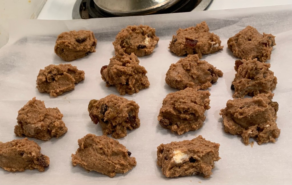 Voila! You have Whole Wheat Raisin cookies! By the way, chopped walnuts would be great to add too but are not necessary. It’s optional. Some people like to add 1 cup of uncooked cooking oats. Oats are also great for helping to regulate blood sugar!