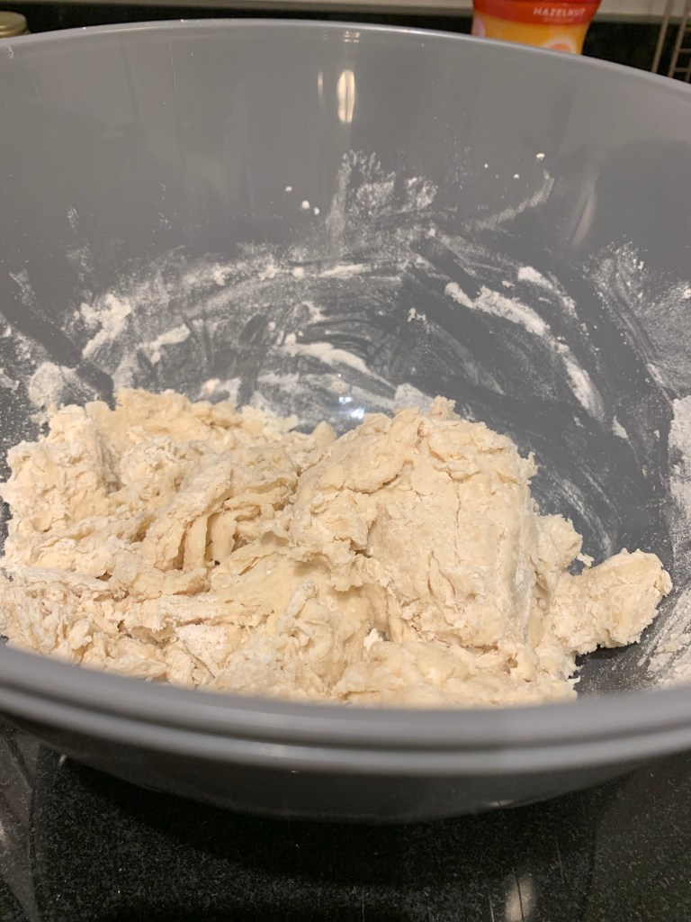 AND, this recipe is so easy. STEP 1: basically MIX all ingredients together (in no particular order!). It is fun. Now, there may be excess flour that doesn’t want to mix in. So you will have to add about 1/2 cup to a full cup of water, a little at a time, to smoothen the mixture out.