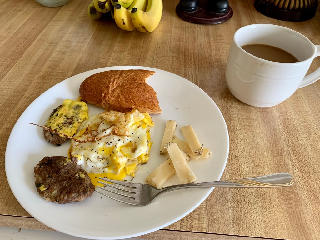The benefits of #redmeat and #eggs for #health is priceless and I can’t emphasize it enough. The vital #nutrients your #body needs are contained in these two foods. Don’t get me wrong: #vegetables (and other low carbs) are helpful. #fruit can be beneficial (yet, quite sugary at times), nonetheless, no matter how many fruits and vegetables you decide to eat, red meat and eggs are still the #best. You can have 5,000 eggs and it will not harm you. Dietary #cholesterol does not affect cholesterol levels in your #heart And the #protein contained in #eggs is valuable. The #vitamins #nutrients and #iron contained in red meat is vital. It’s not that you can’t get your source of #protein any other way. But it’s so easy with eggs and meat. Think #paleo #diet Think caveman days. Think to when there was no such thing as #organic or #lowfat or 2 % #milk , or fat free. Think real #food That is what will keep you #healthy and strong. Here we have two #kofta pieces: 222 calories. Two eggs (large) 160 calories. A half of WHEAT bread:🥖 102 cal. And coffee cup ☕️ 67 cal. w/cream and sugar (8 oz). Total: 551 calories (probably less!).