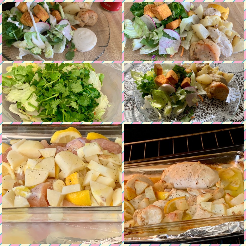 Tonight’s #dinner was fabulous, and I want to post it before I forget my recipe in case anyone wants to try it! It’s a Food Network-inspired #oven #roasted #chicken and I added a lot to it!🐤😀 First, I cut up my #veggies. I chopped two #potatoes, one onion, an #avocado, and a #lemon 🥔🥔🧅🍋🥑. Then, I put each to the side on their plates. I rinsed off my whole #chicken (it was a fresh young chicken, 5 pounds). Then I #rinsed it quickly on the inside and don’t forget to move anything excess or inside the chicken. Then I placed the chicken on the oven-safe plate. I melted two tablespoons, no more than 1/4 cup of #saltedbutter. After that, I added one tablespoon of #thymeleaves to the butter. Do not completely #melt the #butter 🧈 Then add the thyme leaves (1 tbsp) to the butter. You need a brush to dress the chicken. After that dash the chicken with #koshersalt and #blackpepper. Then, make sure to add cooking spray to your oven-safe plate under the chicken, or you can grease the bottom of the plate with butter if you have no #cooking spray. Add one or two cups of #water to the plate, so the chicken sits in a little water. You don’t want it sticking to the plate during the cooking process. After that, design your cut-up veggies all around. After that, I like to drizzle the whole thing with #extravirginoliveoil 🫒 but it’s not completely necessary. I also like to dash again but this time with table salt. Finally, squeeze part of the #lemon over it to give it that #zesty taste🍋🍋🍋. Yummy! You have chicken, lemon, thyme, potatoes, an onion AND an avocado! What more could you want?👩🍳😃🧅🥑🥔🌱 Cook at 400-425F for up to one hour. Cooking times will vary. Check on it every five to ten minutes. If the top starts to burn, you want to lower the temperature, and spice it with a little more salt (do not over salt!) you can always add more after it’s done. But if you make something too salty you can’t fix it. #Under-salting is always best! The kosher salt is really rich and works its way into it nicely so you don’t need much. Check on it every five to ten minutes, again, but mine didn’t need one whole hour. Your thermometer should read at least 160 F. Voila! It’s done!🥑🥔🌱🧈🍋🧅🐤