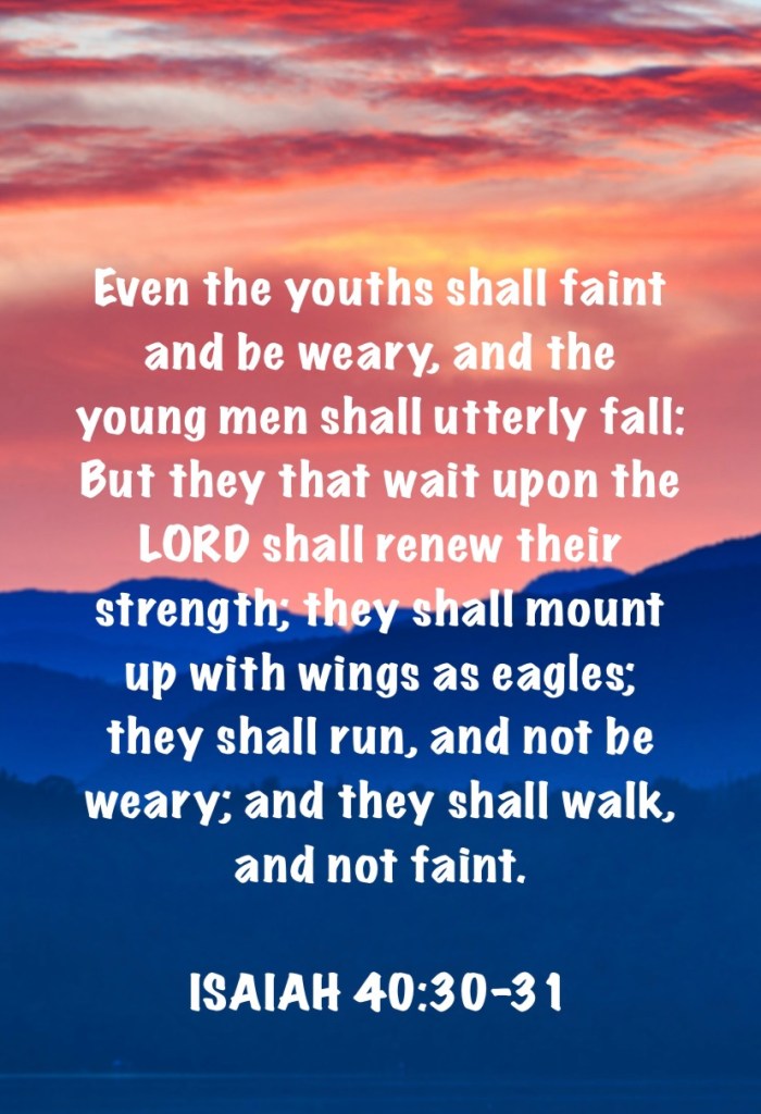 Recently I was having a little anxiety about all the tasks set before me. I kept thinking about my future and how it will be. I lost my dad a few years ago and my responsibilities have grown. I helped care for him before, and now I am still helping mom. I felt a lot of pressure. Life can be difficult and caring for others can make it harder. God whispered in my heart, “Keep on going. I will get you through. Work through these feelings.” I got up. Went about my day. Completed the difficult stuff and thanked him.