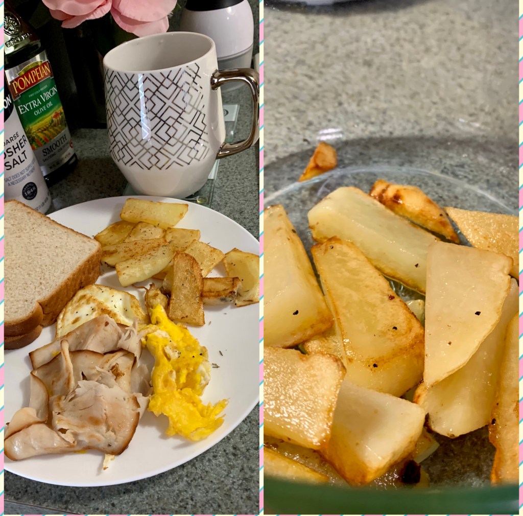 This is a pretty healthy concoction for a late lunch today. The worst part: is potatoes. Potatoes are a ‘starchy vegetable’ and not the best choice. But they are yummy and by far not the worst thing you can have! They’re still a vegetable. I added brown rice (definitely the best ‘grain’ choice)! I try to steer clear of white bread and white rice. Wheat and brown are always the way to go! I did add a tablespoon of butter (unsalted) to the potatoes! Yummy. And contrary to popular belief: the chicken with skin is not bad for you. It’s what we call a ‘healthy fat.’ ALL saturated fat is not bad. You don’t constantly have to have Turkey or veggie burgers. A little skin on your meat won’t kill you. You can always tear it off, anyway. Think real food! Do away with ‘skinny meals,’ low fat, and fat-free. Those are not healthier choices. Low-fat cheese is not healthier than whole milk or cheese. Low-fat milk doesn’t benefit you greatly over regular milk. They are not making you skinnier. They just make you hungrier because of their added alternatives. Don’t miss the vital nutrients your body needs. The lemon was for squeezing over the rice and chicken and potatoes! I love the zest of the lemon and the taste of it with some added salt!🍋 Total calories: (roughly) 590 without adding drinks or condiments.