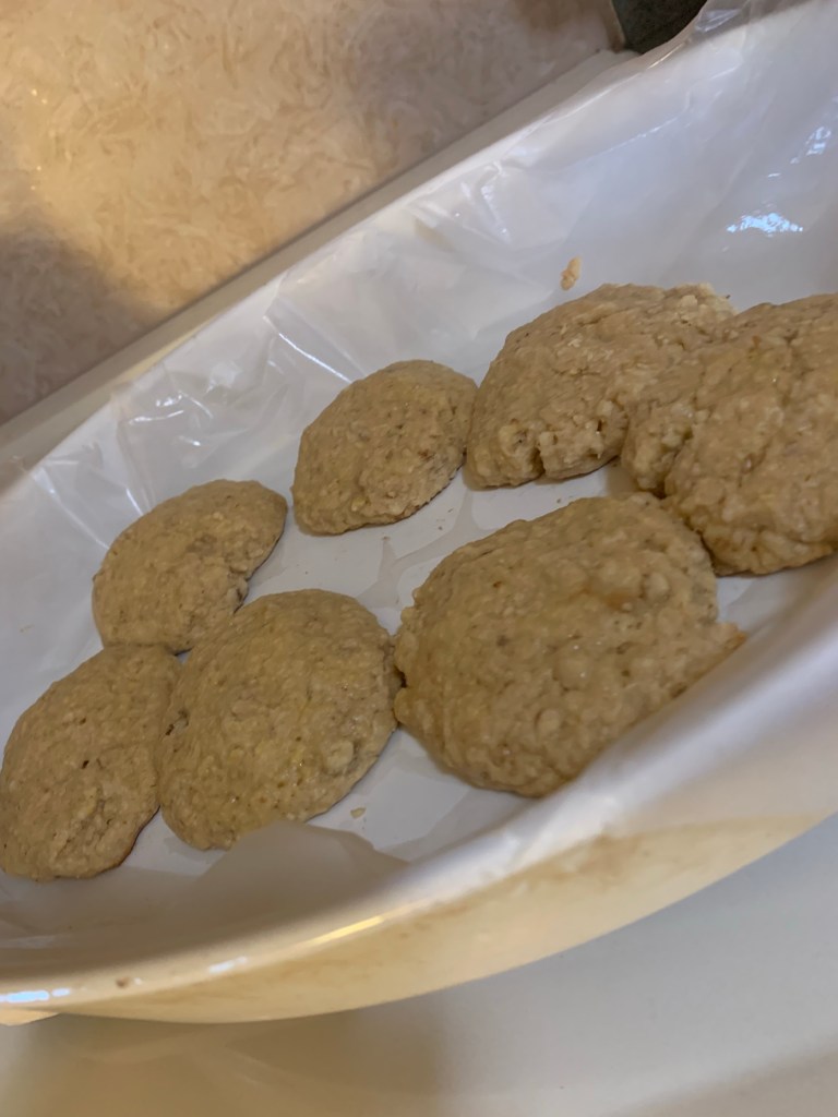 I will post some pictures below. I also want to share the recipe in case anyone would like to make them. They came out to 25 cookies all together. What’s great about making a large batch of cookies is you can refrigerate them for up to 1 week and then freeze what you have not consumed for 1-3 months.. I like to put each cookie in its own plastic baggy.