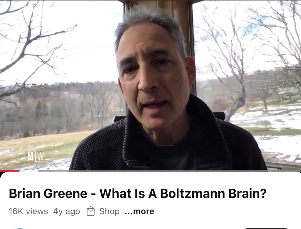 What is a Boltzmann Brain? “If you wait, long enough, anything can happen,” says Brian Greene, a world renowned physicist. This theory represents the idea that you are nothing more than a ‘brain floating in the void.’ Basically, you are a configuration of particles floating in the random fluctuations <of space🌌> Elon Musk agrees, “There’s a reason why no one has ever had a brain transplant. You are your brain.” The brain’s shape is also lovely like the universe, with particles floating inside of it, just like with galaxies – stars –and dust🌠. Watch this short presentation by world renowned physicist, Brian Greene. Click on the link below.