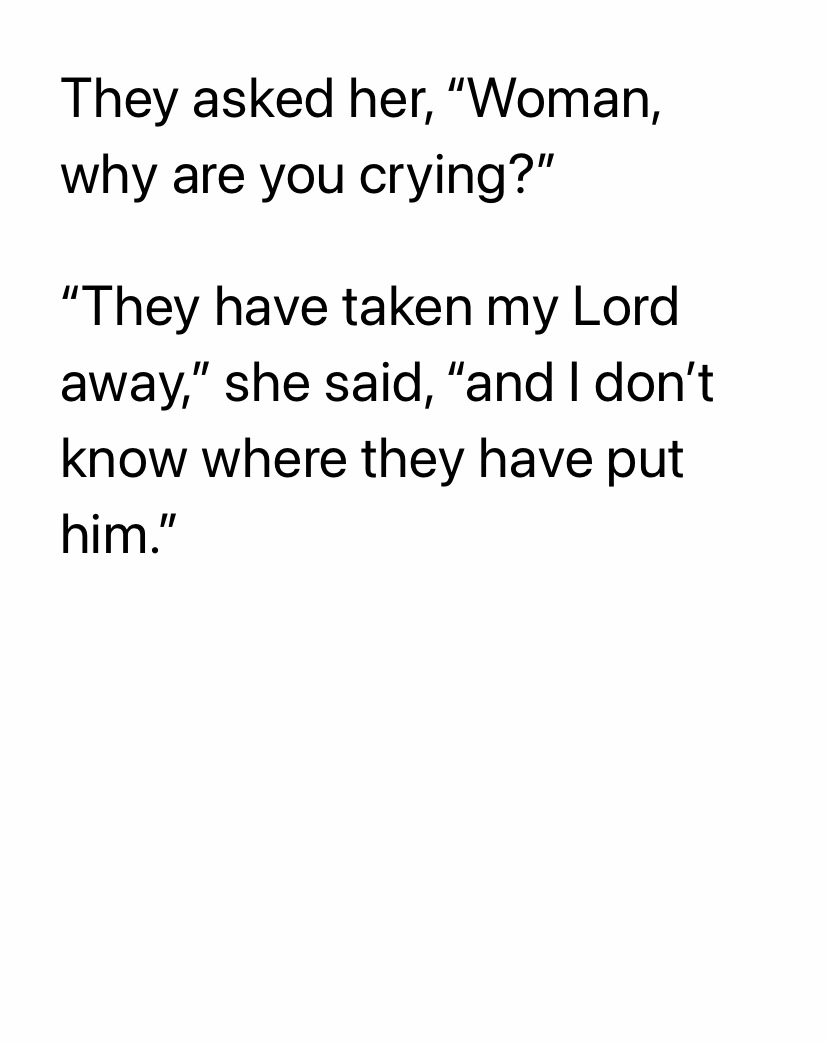 When Mary Magdalene went to search for Jesus’s body after he was laid to rest, she was surprised to see he was not there. Who she thought was the gardener was Jesus. Supposing him to be the gardener, she said, “Sir, if you have taken him away, tell me where you have put him, and I will go and remove him.” Jesus said, “Mary!” She knew him then and said to him in Hebrew, “Rabbani!”—which means Master. Mary went there broken-hearted. She went to his tomb. Her master, her God, had been crucified. All hope was gone. All security diminished. It seemed that death had won. Mary was telling the supposed gardener to tell her where he was (even though she thought him to be dead). “I will bring him here. I will take care of him.” Mary loved Jesus so much that she wanted to bring him to her and the other disciples. Have you ever felt like anything in your life has been dead, only to find it’s been resurrected? Have you ever been heartbroken beyond belief only to find a newfound hope, a new life you never imagined? I can’t imagine the awe, wonder, and fascination that must’ve been going through Mary’s mind when she learned that Jesus was alive! It meant so much—she ran back to tell the Good news to the other disciples. “Jesus is alive!” She tells them. This changed everything. Hope was alive. Death has lost. Evil had not won. He’s the beginning and the end. The Author and Finisher of Life.🌟🙏☦️