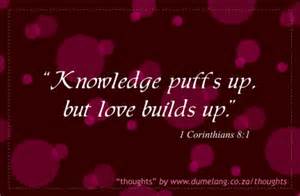 try to see the good in them, and see them the way that God does, this is my prayer today. “Knowledge puffs up, but love edifies. And if anyone thinks that he knows anything, he knows nothing yet as he ought to know” (1 Corinthians 8:1-2). How about building each other up today?