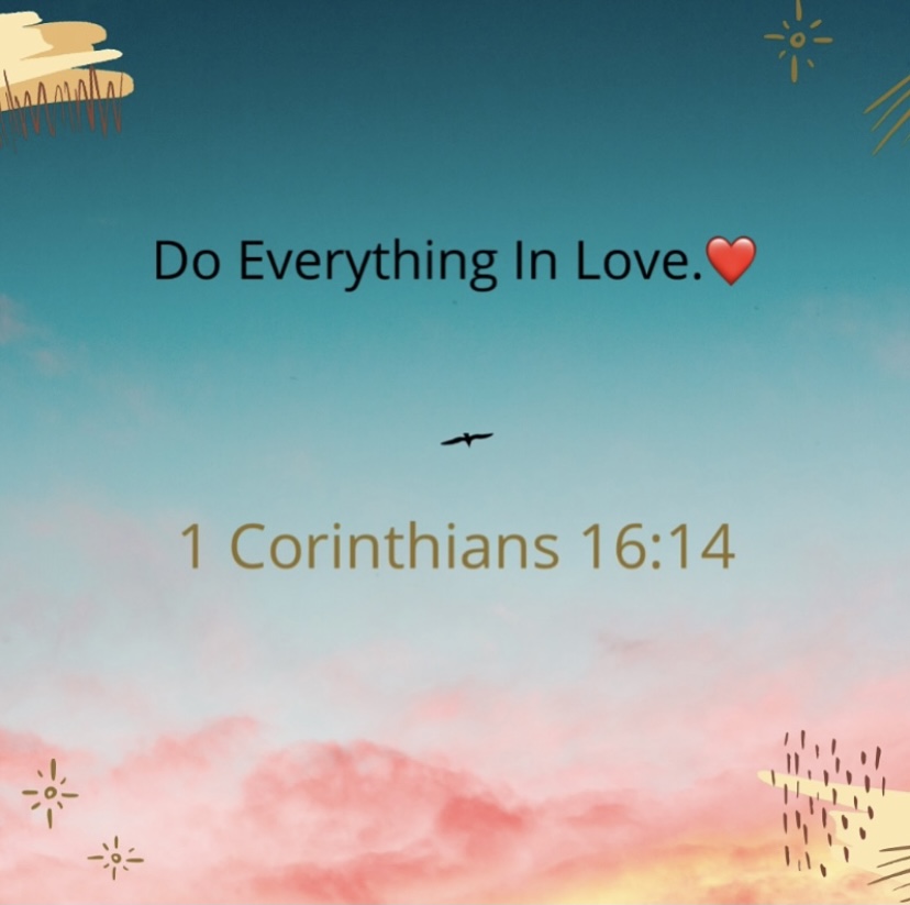 Do everything in love for each other. Be of courage and strong. Complete your labor for one another but also for God. “The Lord is your keeper…he will watch over your life (Psalms 121:5, 7).”💖