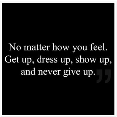 I love this quote! I think it should be our motto. No matter how tired you may be, or disappointed. Regardless of any feelings of negativity you may be experiencing. Even when it hurts me, I show up. By showing up we have won half the battle! And of course, never ever give up!